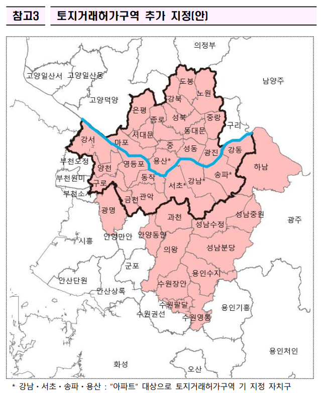 토지거래허가구역 추가 지정 지역 지도. 조정대상지역·투기과열지구 지정 지역과 동일하다. (출처: 국토교통부) |