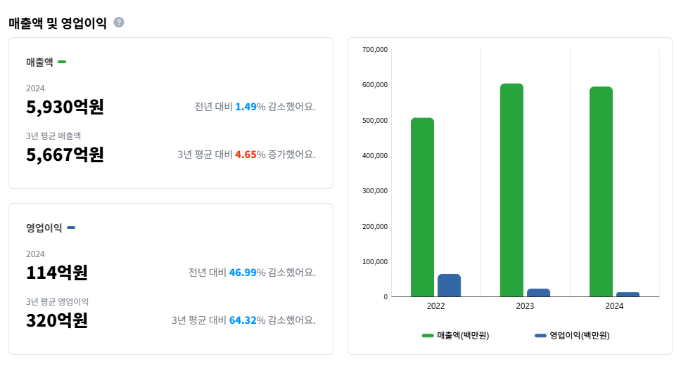 | 최근 3년간 건설사 매출액 및 영업이익 확인이 가능하다. (출처: 산업의역군 기업DB) |