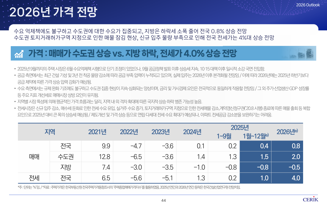3-3. ’26년 가격, 매매가 0.8% · 전세가 4.0% 상승 전망